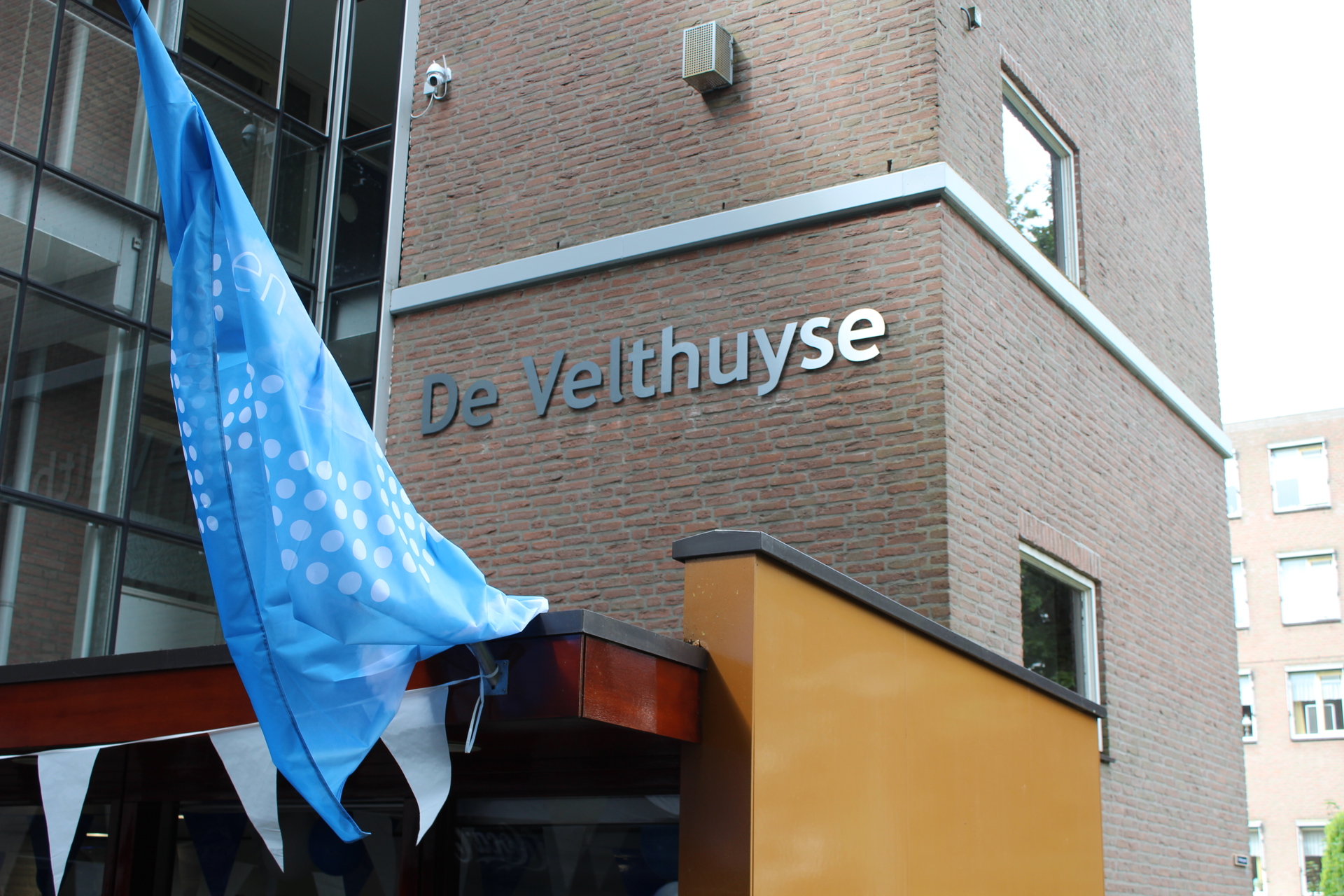 Het initiatief kwam van de heer Meuris, bewoner van het gebouw, met de vraag of het gebouw benoemd kon worden. Net als het naastgelegen gebouw, De Naeldhorst. Het idee werd omarmd door de medebewoners en 3B Wonen. Met een meerderheid van stemmen is de naam De Velthuyse gekozen. Maar van het één kwam het ander in De Velthuyse. Er stonden namelijk werkzaamheden gepland voor het complex. Het werd een heus project. Niet alleen is de naam op de gevel aangebracht, het gebouw werd geschilderd en de jaarlijkse schoonmaakbeurt van de buitenruimte uitgevoerd. Ook de hal kreeg een opknapbeurt: nieuwe frisse kleuren en een prachtige fotoprint op de wand maken van de binnenkomst een feestje. Dat feestje werd ook gevierd met de bewoners van De Velthuyse die waren uitgenodigd voor de onthulling en werden getrakteerd op koffie met gebak.
